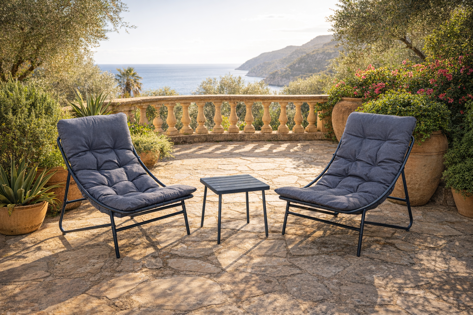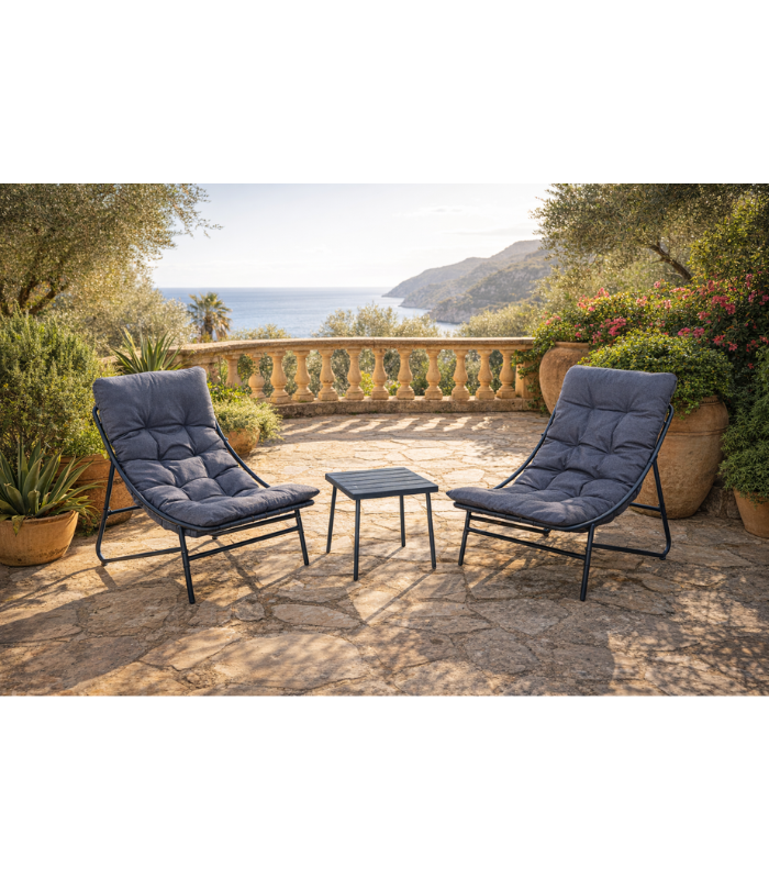 Ανακαλύψτε την απόλυτη άνεση για τον εξωτερικό σας χώρο με το σαλόνι κήπου relax 3 τεμαχίων σε κομψό γκρι χρώμα. Ιδανικό για βεράντακήπο ή αυλή, συνδυάζει μοντέρνο design με εξαιρετική άνεση για ώρες χαλάρωσης.