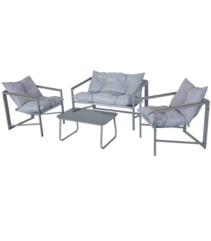 Σαλόνι σετ/4τεμ. 2θεσ. καναπές με 2 πολυθρόνες & τραπεζάκι – Ανοικτό γκρι