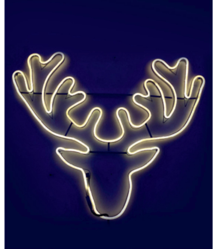 Περίγραμμα Neon Πλακέ σε σχήμα κεφαλιού ταράνδου. IP44, Ø78cm.