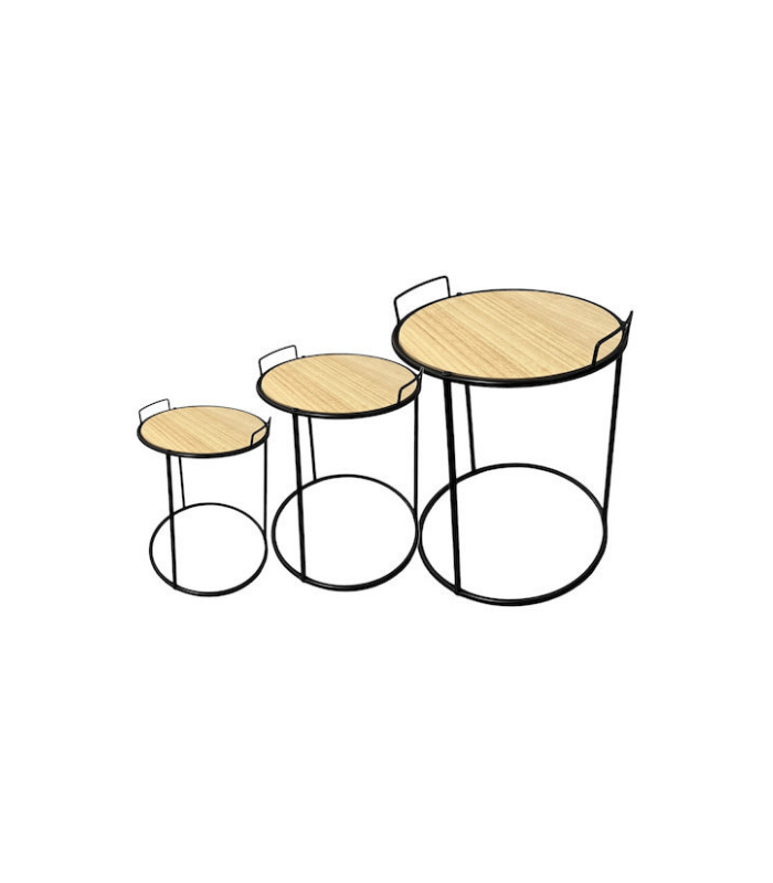 Σετ Βοηθητικά Τραπεζάκια 3 Τεμαχίων Μέταλλο Μαύρο Ξύλο 30x40cm-38x49cm-45x56cm