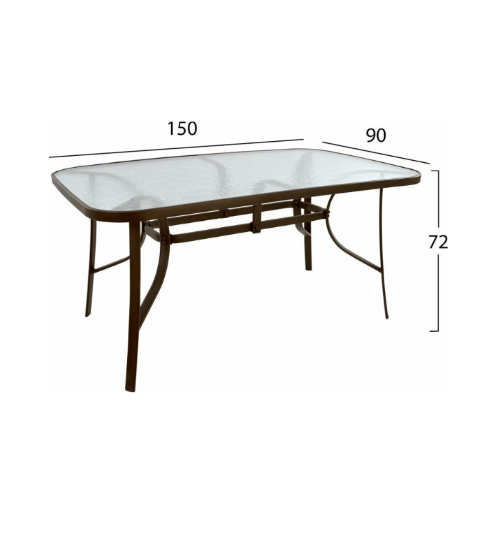 Τραπέζι Εξωτερικού Χώρου Μεταλλικό με Γυάλινη Επιφάνεια Bruno Καφέ 150x90x72εκ.